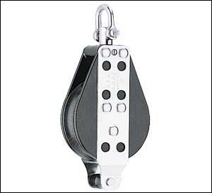 Description Heavy duty single/becket Sheave dia. (in) 3 Length (in) 6 1/4 Weight (oz) 8 1/2 Max. line dia. (in) 7/16 Shackle pin dia. (in) 1/4 SWL (lb) 750 Breaking strength (lb) 3000