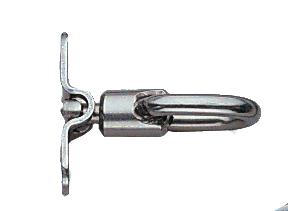 Dead end terminal that can be through bolted and eye for attaching high tech cordage.