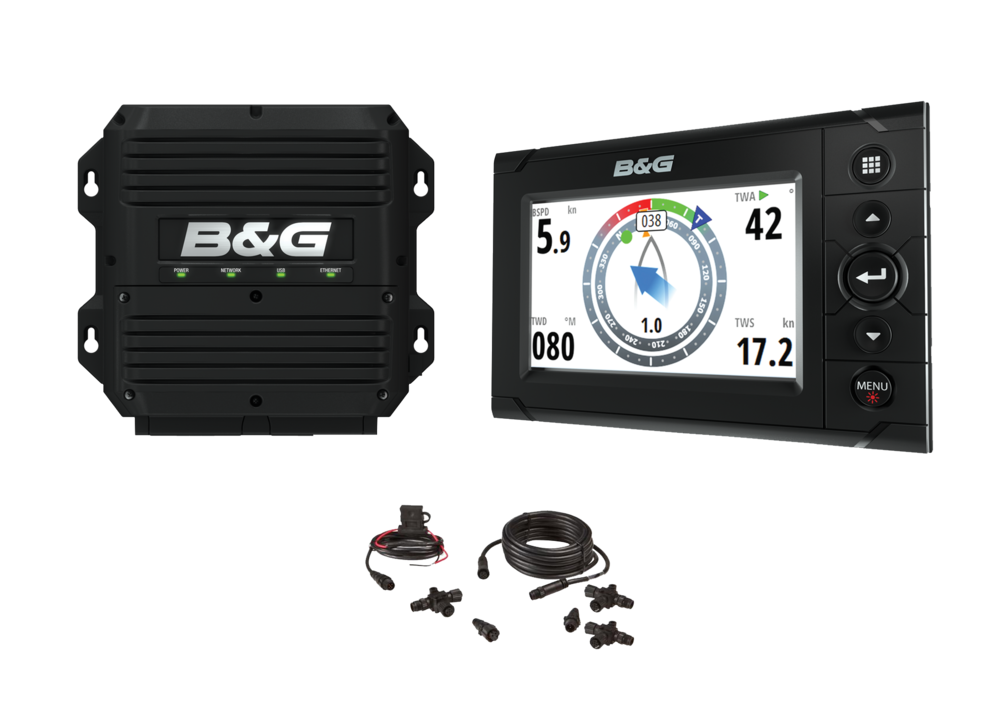 The H5000 instrument system is powered by a smart Central Processing Unit (CPU), capable of running three levels of software, Hydra, Hercules and Performance. Performance is specifically designed for larger yachts. In addition to the benefits of running a CPU delivered by Hydra, plus the racing features of Hercules, Performance introduces features to facilitate the monitoring of complex systems typical of larger yachts such as support for dual wind sensors. Additionally, the system provides support for dual rudders, including advanced features like rudder toe-in angle. Performance also monitors multiple daggerboards; port, starboard, centre and provides an active draught value (depth below the daggerboard). Further bespoke functionality delivered by Performance for sailing large yachts includes the tracking of ground wind speed and direction, Rate of Turn and enhanced polar performance targets. It is straightforward to set up and calibrate with the new H5000 web-browser interface, however complex the system. Key Features -Hercules spec plus: Performance is packed with all the powerful features of the Hydra and Hercules systems, adding unique functionality for larger racing yachts and Superyachts -User Defined Functions: This intuitive system lets you define up to 16 user functions for the ultimate in configuration flexibility. -Enhanced Sensor Support including Dual Wind: The Performance CPU introduces features for the monitoring of more complex systems typical of larger yachts including dual wind sensors, rudders and multiple daggerboards, Ground Wind speed and direction and Rate of Turn -Ultra-fast ARM Processor: The CPU achieves processor speeds of up to 50 times that of its predecessor, for rapid calculation, real-time data and fast updates; each with the trademark B&G precision -GoFree™ Wireless Technology: Expand functionality even further with third-party apps and stream data via GoFree, B&G’s powerful wireless solution to remotely view H5000 instrument data via your tablet or smartphone. Requires wireless module. -Network compatible: H5000’s highly compatible network provides peace of mind and swift, seamless integration with other instruments and electronics across the B&G marine network including AIS, radar and chartplotters -Browser-based set-up: The CPU features browser-based setup via the new H5000 interface for fast, efficient and hassle-free commissioning and calibration LED status indicators: Status indicators on the CPU provide a clear indication of system status.