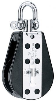 Description Single Sheave dia. (in) 3 Length (in) 6 1/8 Weight (oz) 14 Max. line dia. (in) 9/16 Shackle pin dia. (in) 5/16 SWL (lb) 1800 Breaking strength (lb) 5000 Holding power w/180 degree wrap 50 lb (23 kg) 8:1 Turns Counterclockwise