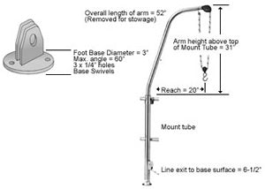 Forespar's� Nova products combine elegant styling with superb strength and function. The Patented Nova Lifts use internally let purchase to keep the lifting arm centered over the load. Other brands swing left and right without control. Another valuable feature is the internal lead to your cockpit winch where you have loads of lifting power to make the job easy! No external block & tackle. Nova Lift comes with a stainless steel lower mounting tube that will accommodate 30" height rails. Vessels with rails higher than 30" will require the use of a deck pad (not included) to raise the installation to the proper height. The Nova Lift� with winch is ideal for trawlers and motor yachts where sailboat winches are not available.