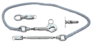 Tubular turnbuckle with toggle jaw on one end and eye on the other for use with 12 strand spectra or other high tech cordage.